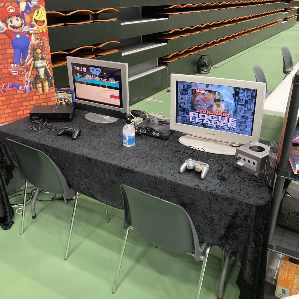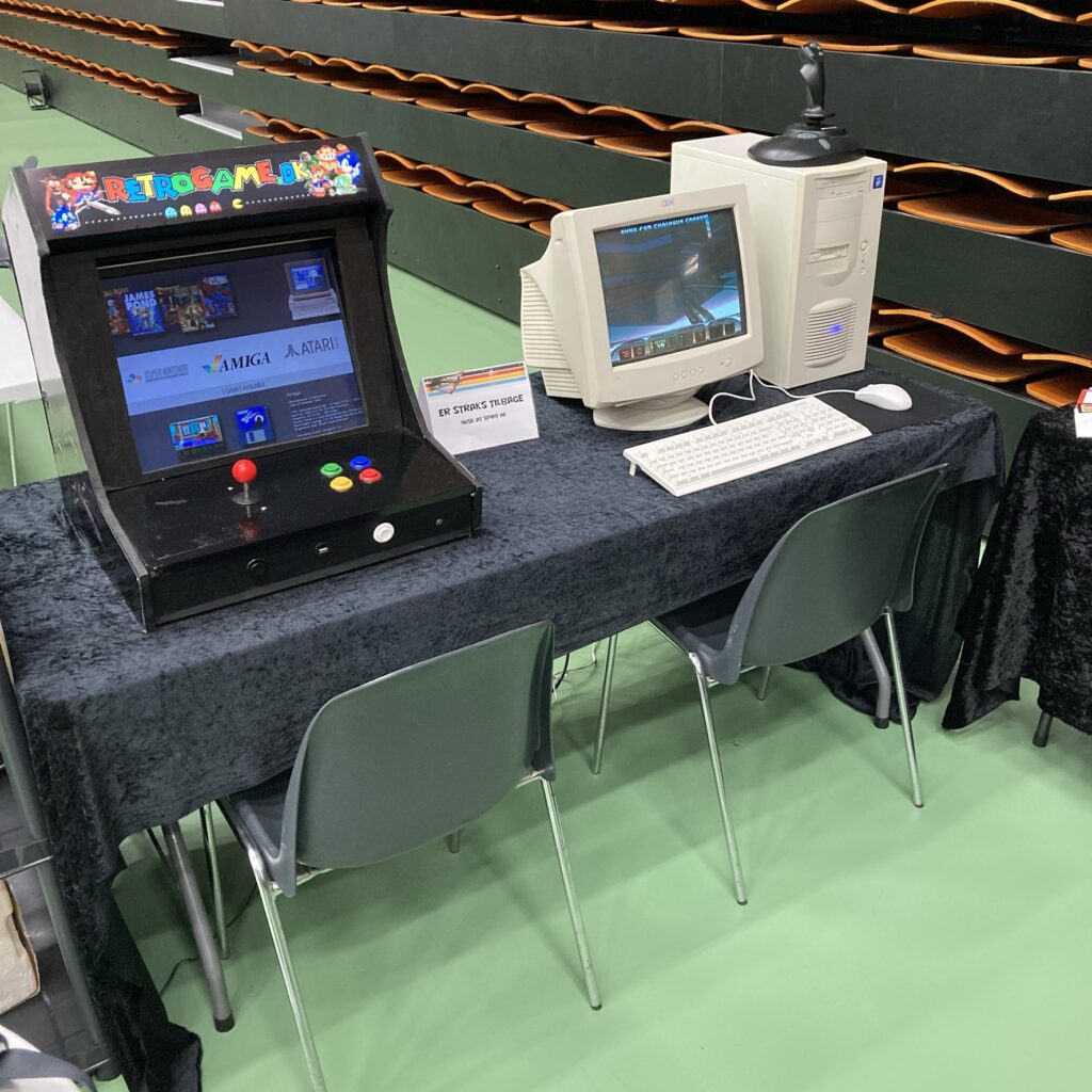 Efter en pause pga. corona var vi tilbage igen i Randers Arena. Vi havde denne gang nogle af de samme maskiner med, men vi havde også en mindre udstilling med diverse retro elektronik. F.eks. alle de ting som vi har i en moderne telefon, delt ud i enkelte ting, som kamera, radio osv.